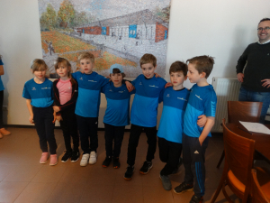 Tijdens het openingstoernooi hebben we ook de nieuwe clubkleding uitgereikt , zodat we ons als team uniform gekleed bij de competitie kunnen presenteren.